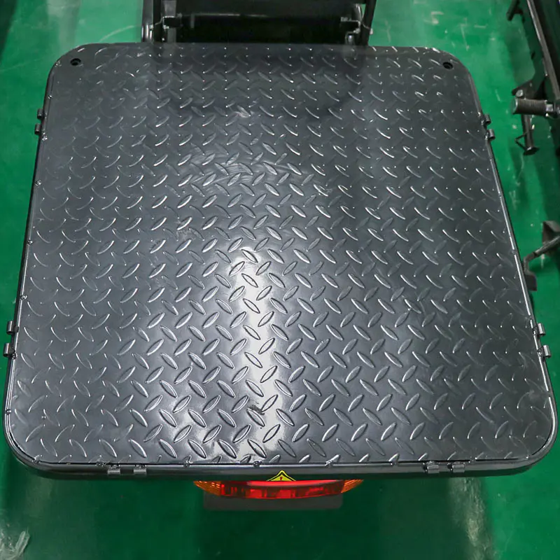 Max Speed can reach 60kmh with 100km range. Its 12 inch vacuum tire, can support a stable running performance. Front disc brake, rear drum brake,make sure a shorter brake distance. If you still worry about the loading ability, the large size of pallet and strong frame, make sure load 800kg cargo easily.